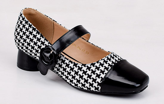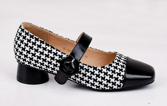 鞋面材质:千鸟格+pu